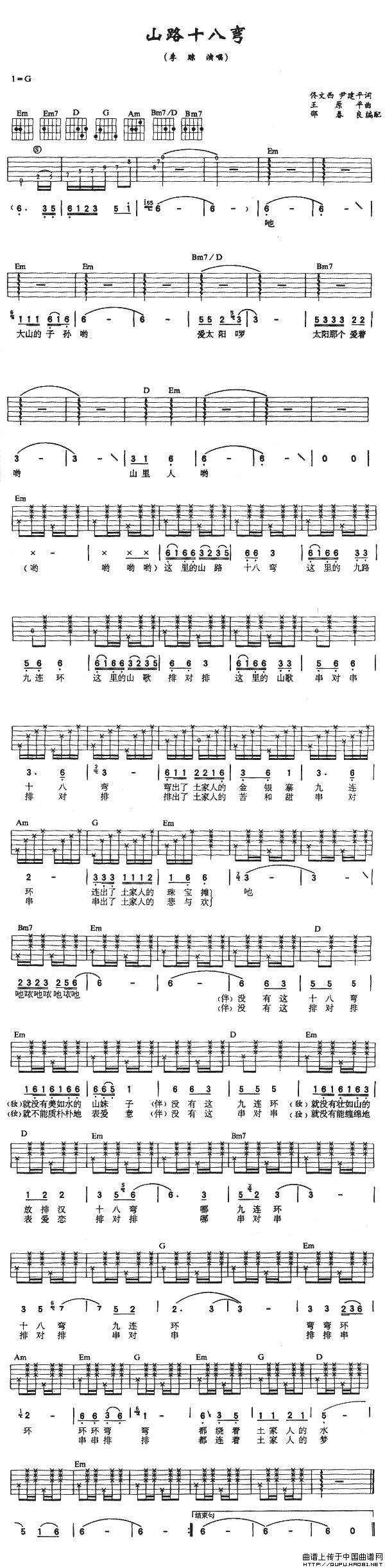 关于《山路十八弯》曲谱的评论