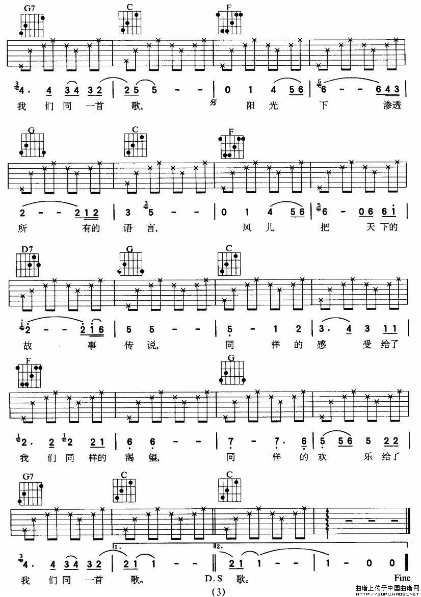 当前位置: 首页 器乐乐谱 吉他乐谱 同一首歌(2个版本)