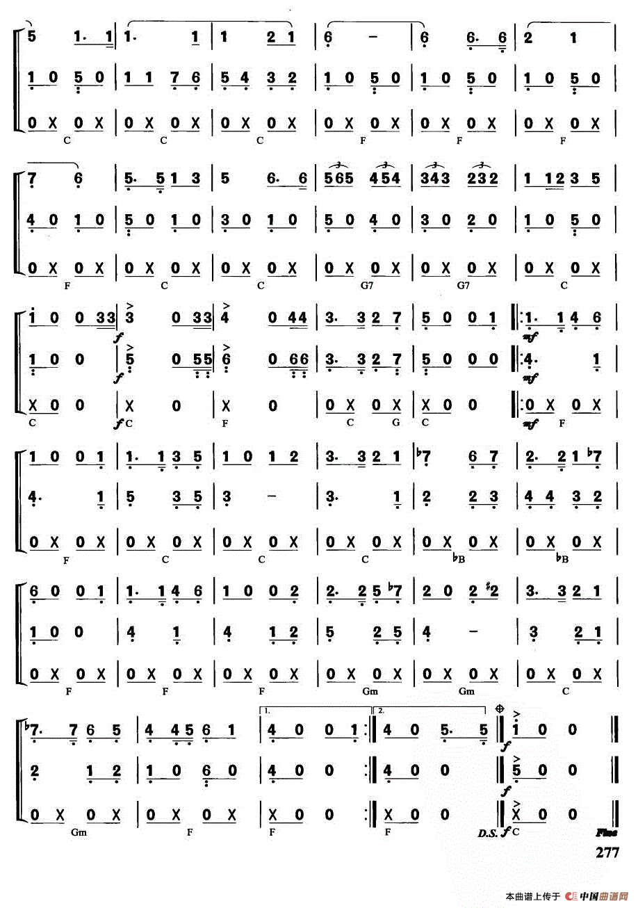 提示:在曲谱图片上单击右键,选择“图片另存为...”即可将曲谱保存到您的电脑中,打印时候可将图片插入到WORD中,调整合适大小打印即可。