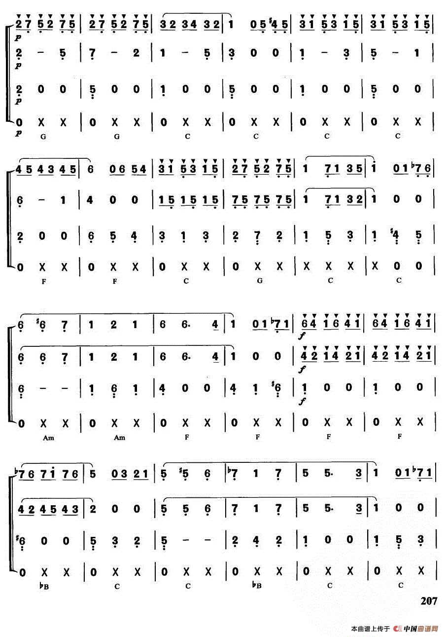 提示:在曲谱图片上单击右键,选择“图片另存为...”即可将曲谱保存到您的电脑中,打印时候可将图片插入到WORD中,调整合适大小打印即可。