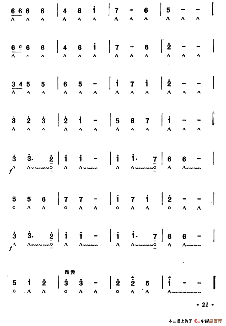 提示:在曲谱图片上单击右键,选择“图片另存为...”即可将曲谱保存到您的电脑中,打印时候可将图片插入到WORD中,调整合适大小打印即可。