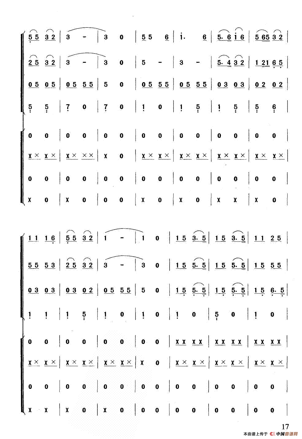 提示:在曲谱图片上单击右键,选择“图片另存为...”即可将曲谱保存到您的电脑中,打印时候可将图片插入到WORD中,调整合适大小打印即可。