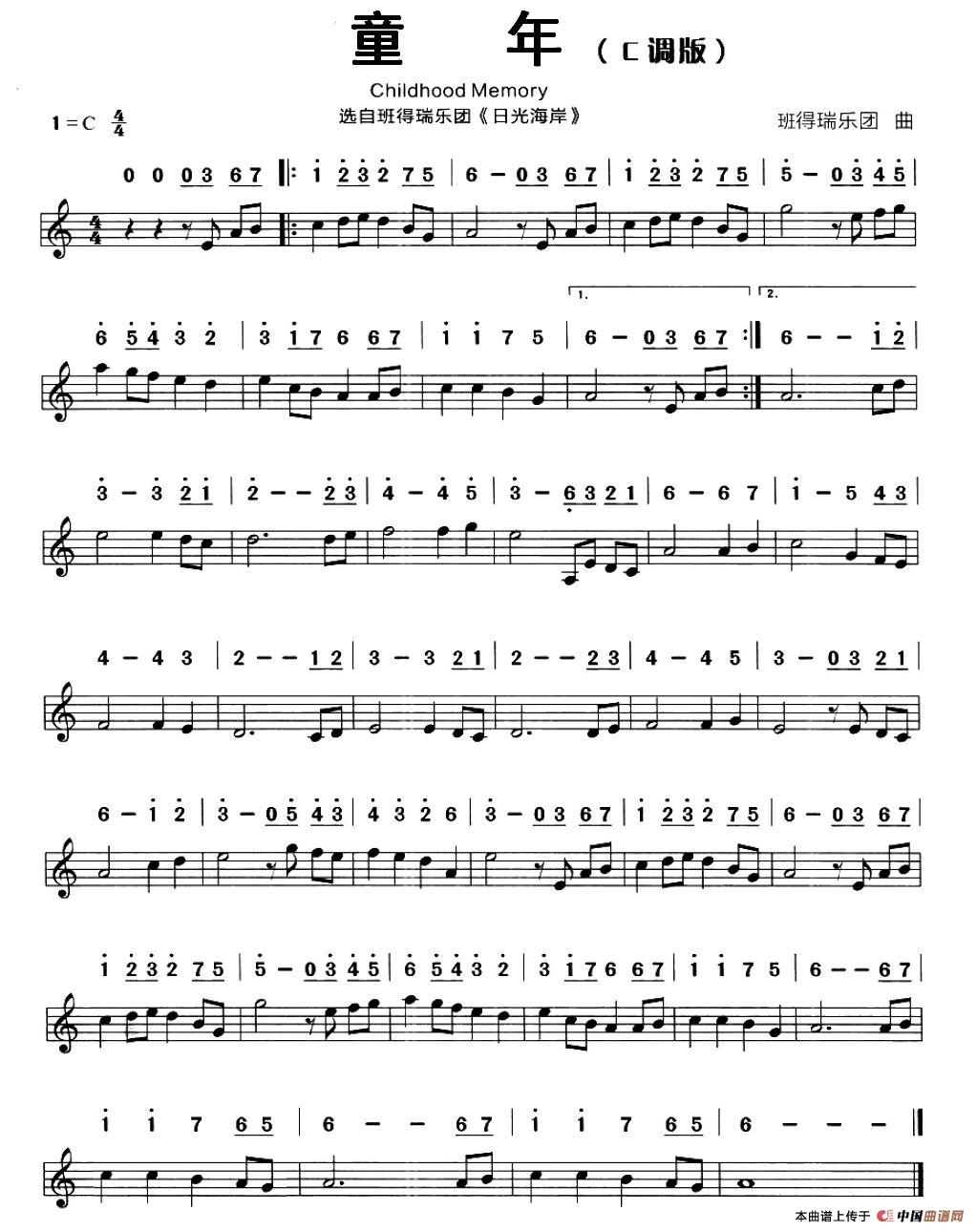关于《童年(选自班得瑞乐团《日光海岸》)》曲谱的评论