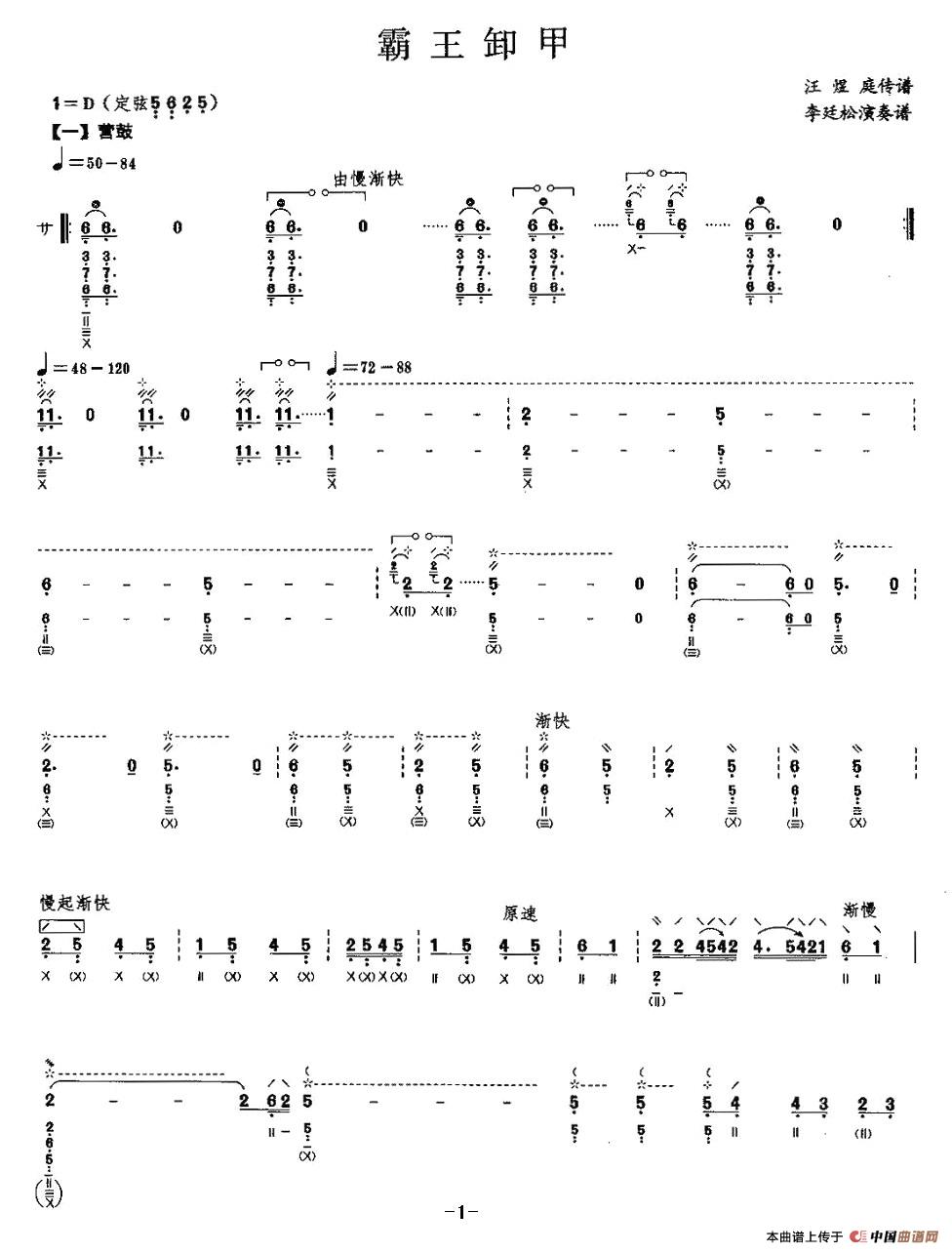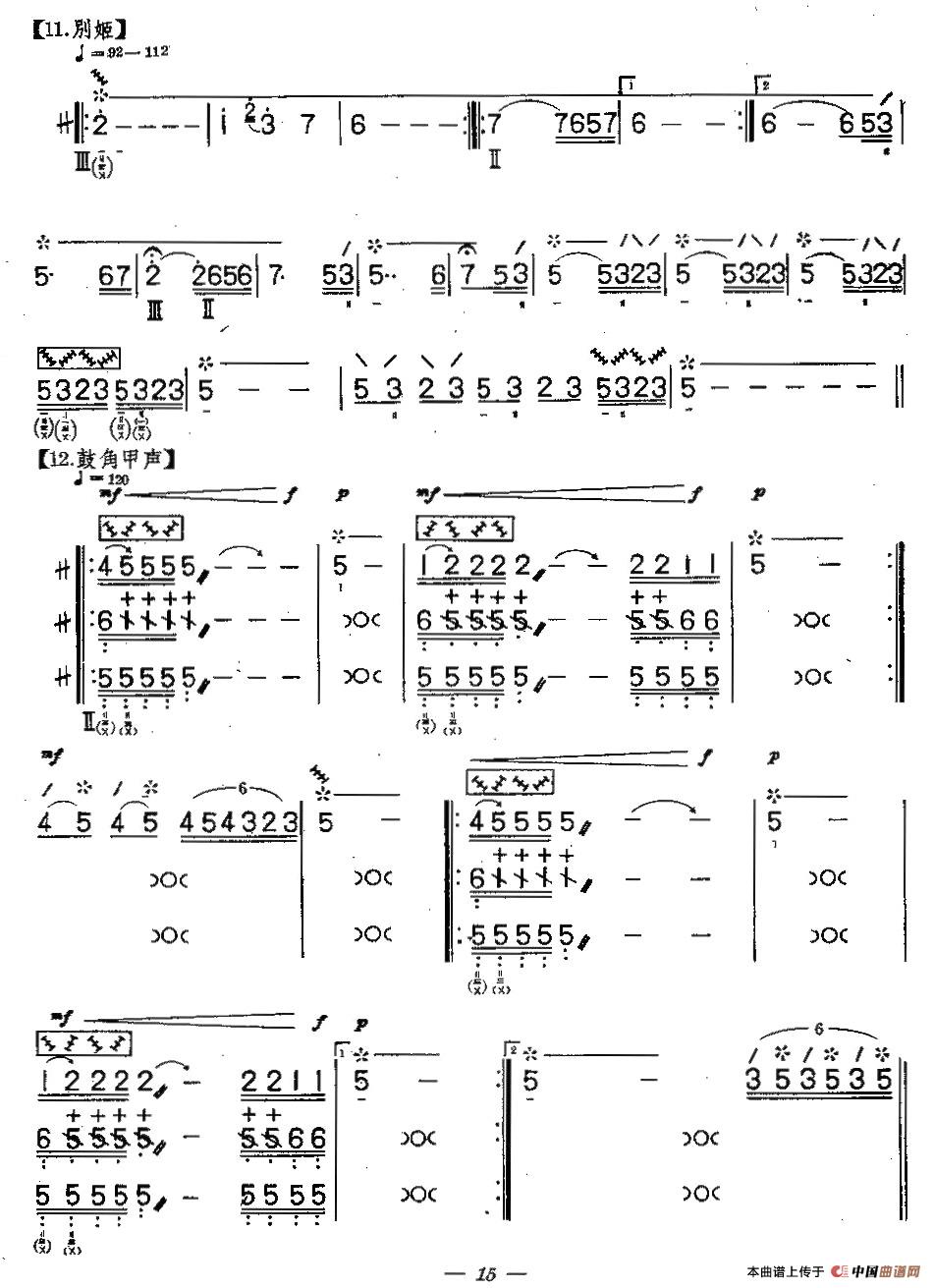 关于《霸王卸甲》曲谱的评论