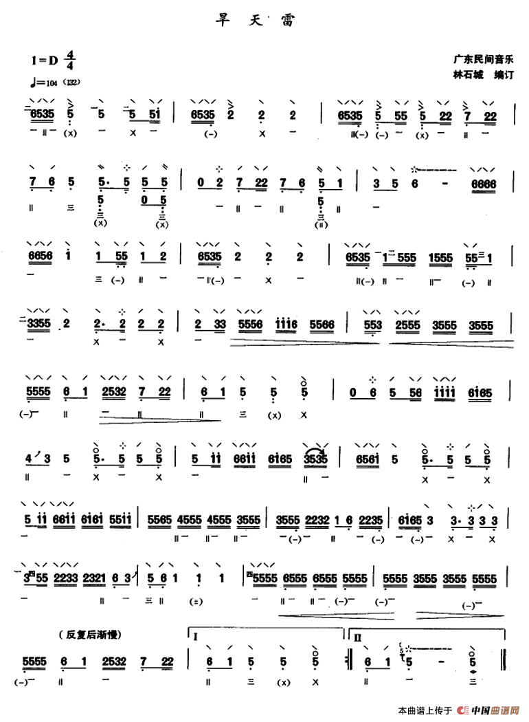 作曲:广东民乐、林石城编订 格式:简谱 来源:《中国曲谱网》 上传:秋叶起舞