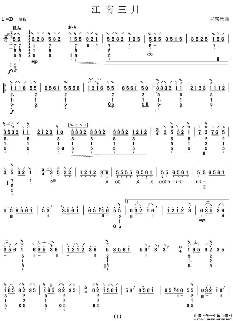 关于《江南三月》曲谱的评论