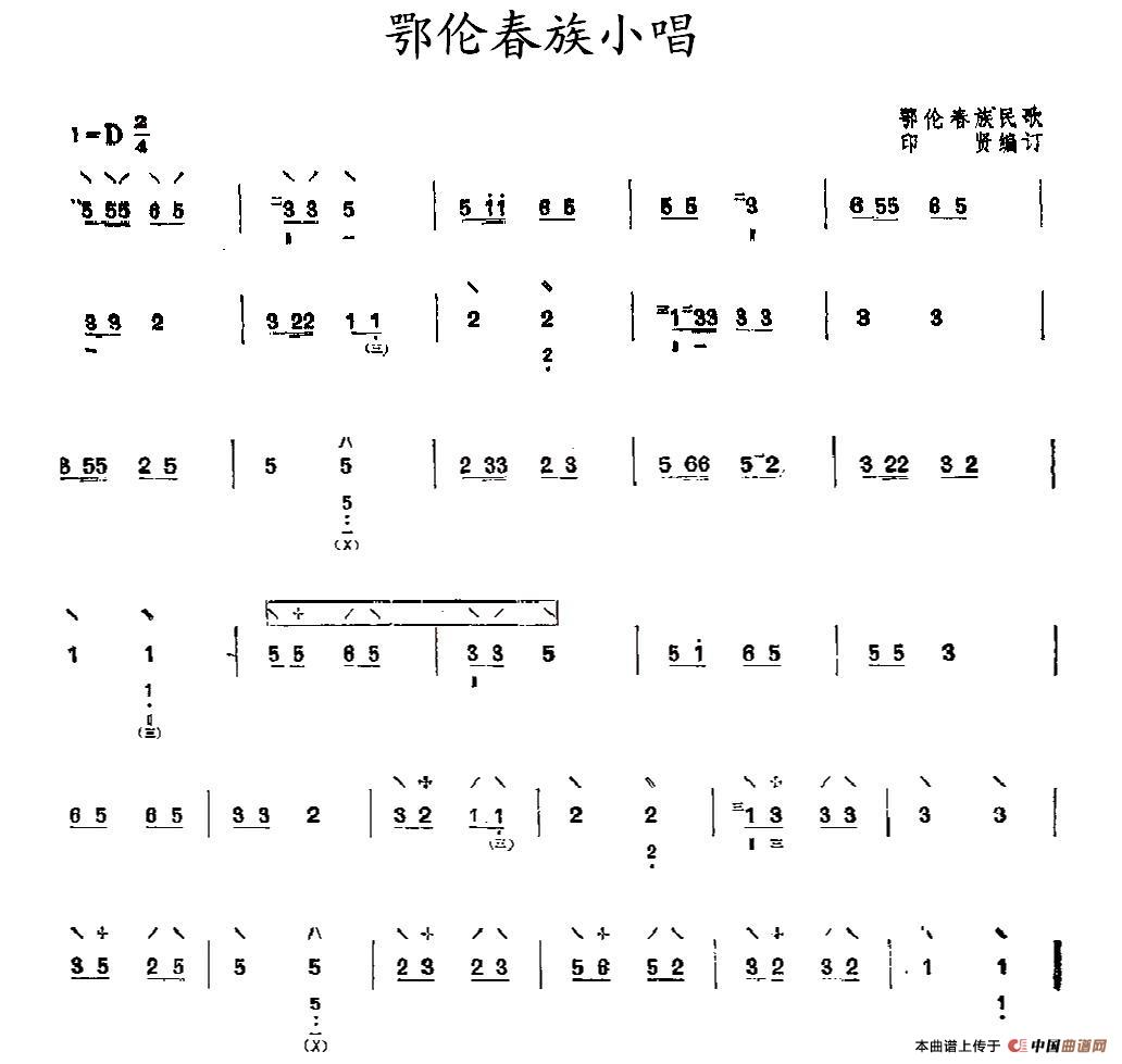 关于《鄂伦春族小唱》曲谱的评论