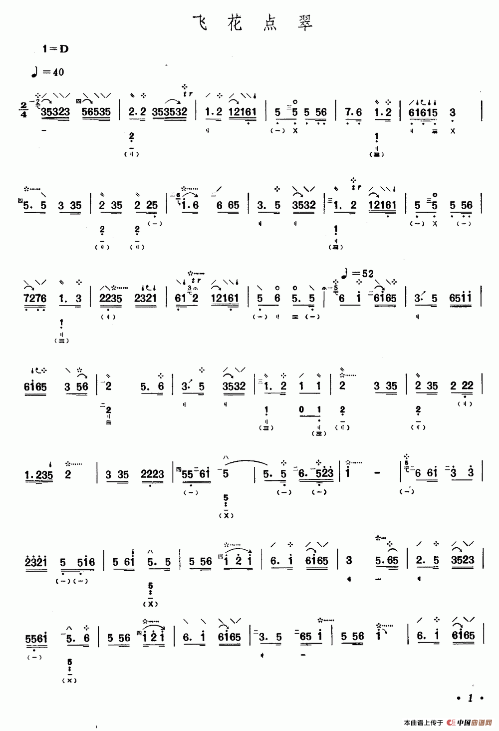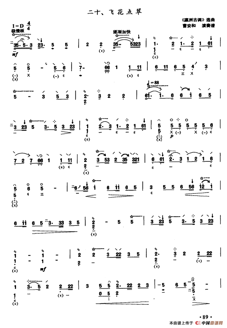 关于《飞花点翠》曲谱的评论