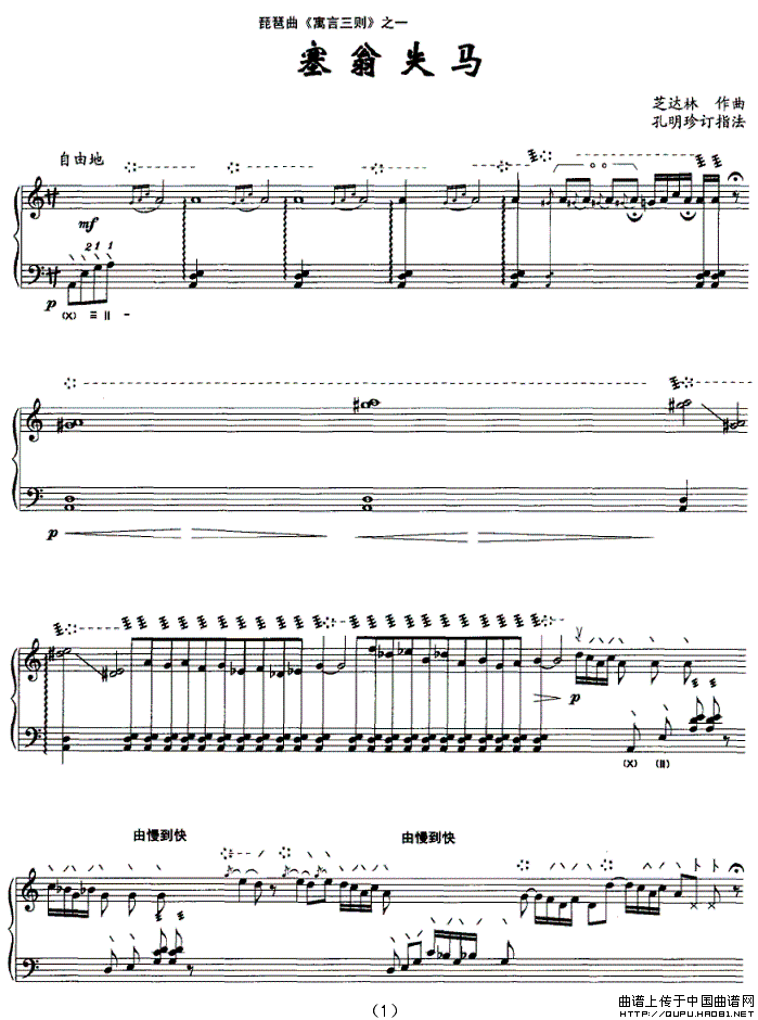 关于《琵琶曲《寓言三则》之一:塞翁失马》曲谱的评论