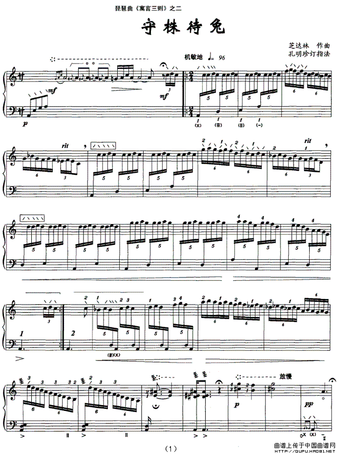关于《琵琶曲《寓言三则》之二:守株待兔》曲谱的评论