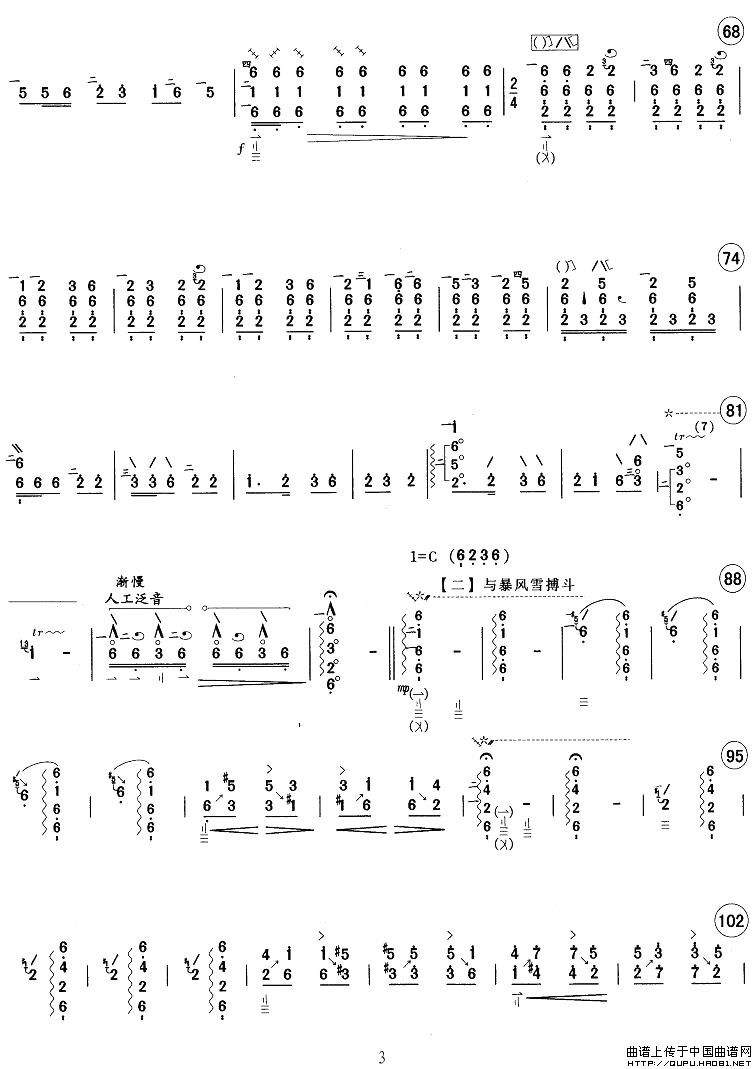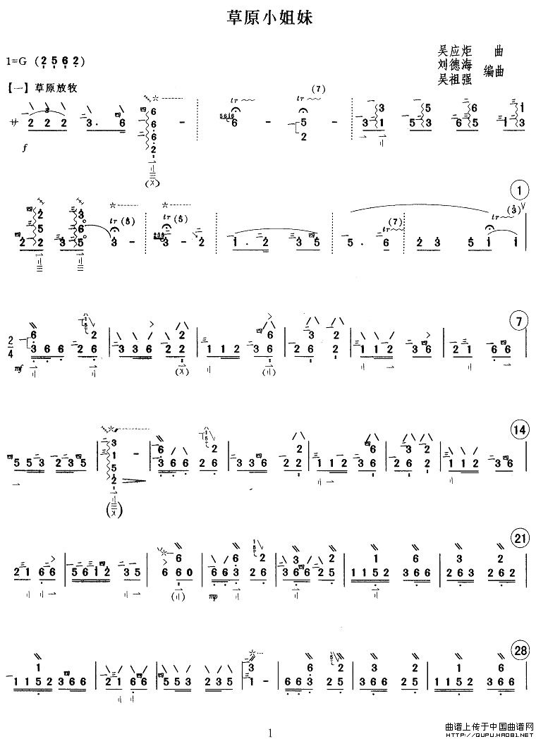 作曲:刘德海、吴祖强编曲 格式:简谱 来源:《中国曲谱网》 上传:秋叶起舞