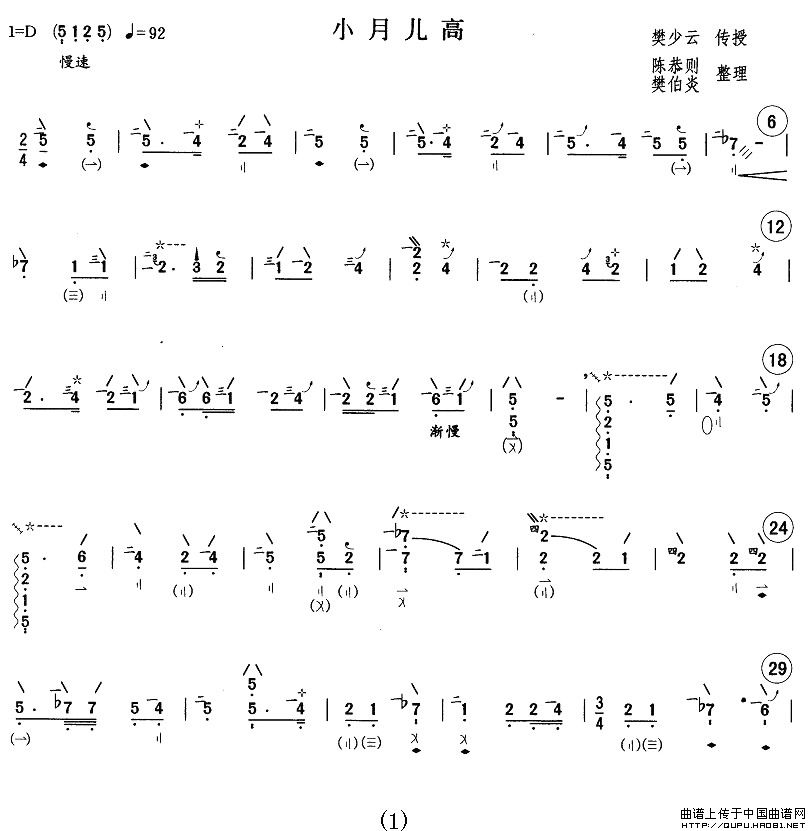 关于《小月儿高》曲谱的评论