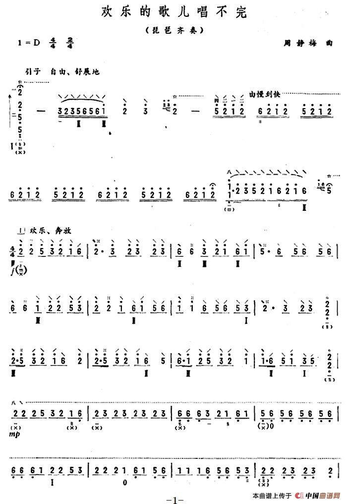 关于《欢乐的歌儿唱不完》曲谱的评论