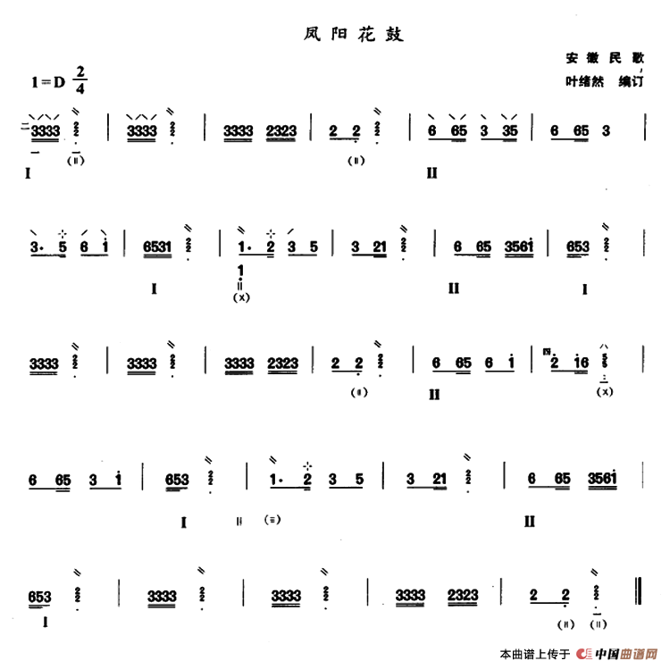 作曲:安徽民歌、叶绪然编订 来源:《中国曲谱网》 上传:秋叶起舞