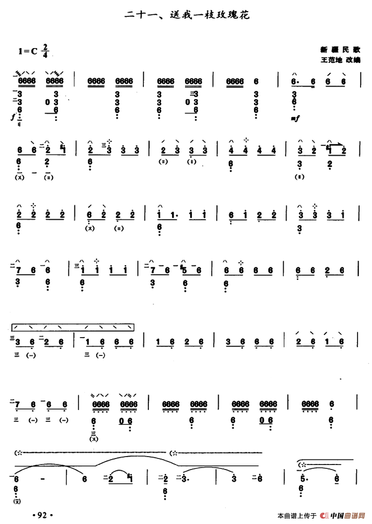 作曲:新疆民歌、王范地改编 来源:《中国曲谱网》 上传:秋叶起舞