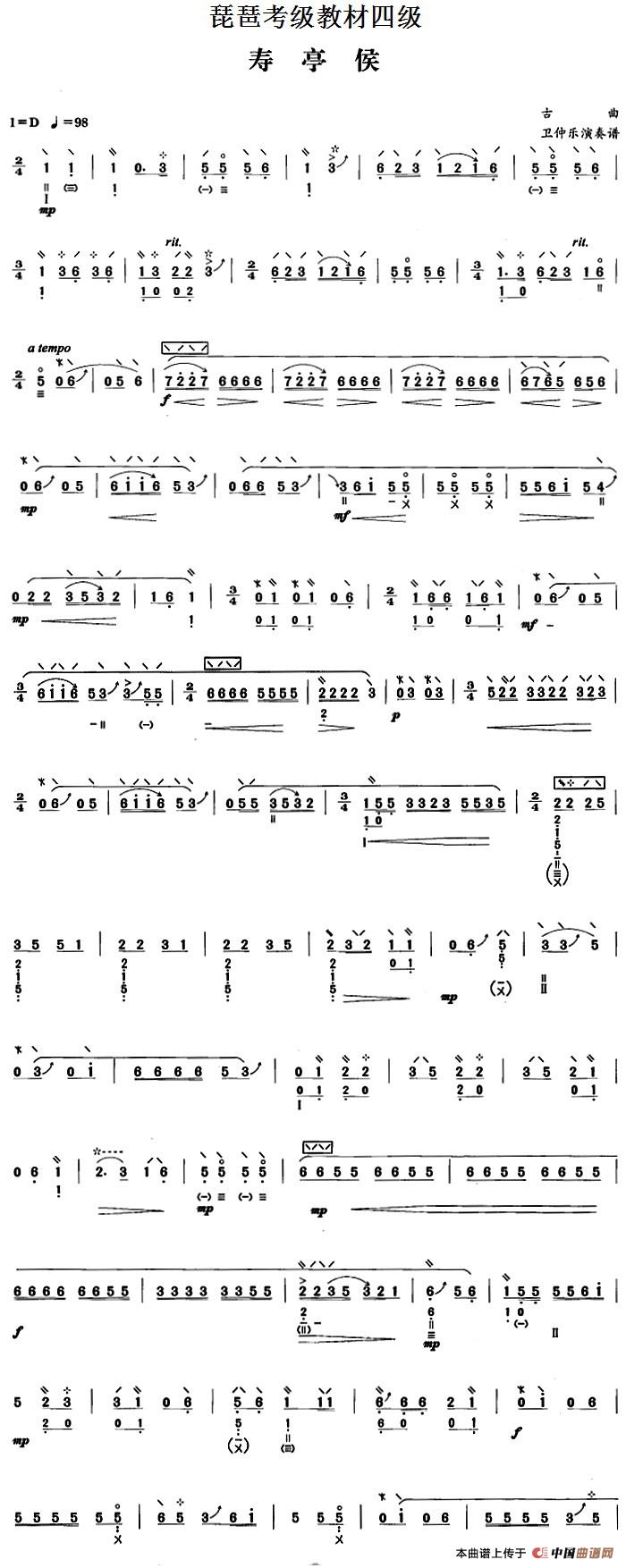 琵琶考级教材四级:寿亭侯(卫仲乐演奏版)