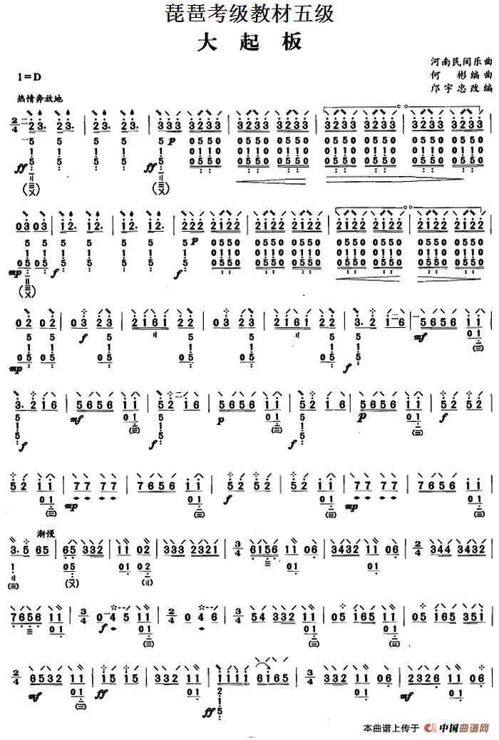 琵琶考级教材五级:大起板(河南民间乐曲)