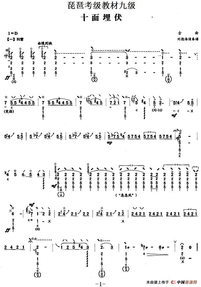 关于《琵琶考级教材九级:十面埋伏》曲谱的评论