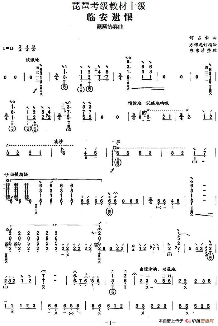 关于《琵琶考级教材十级:临安遗恨》曲谱的评论