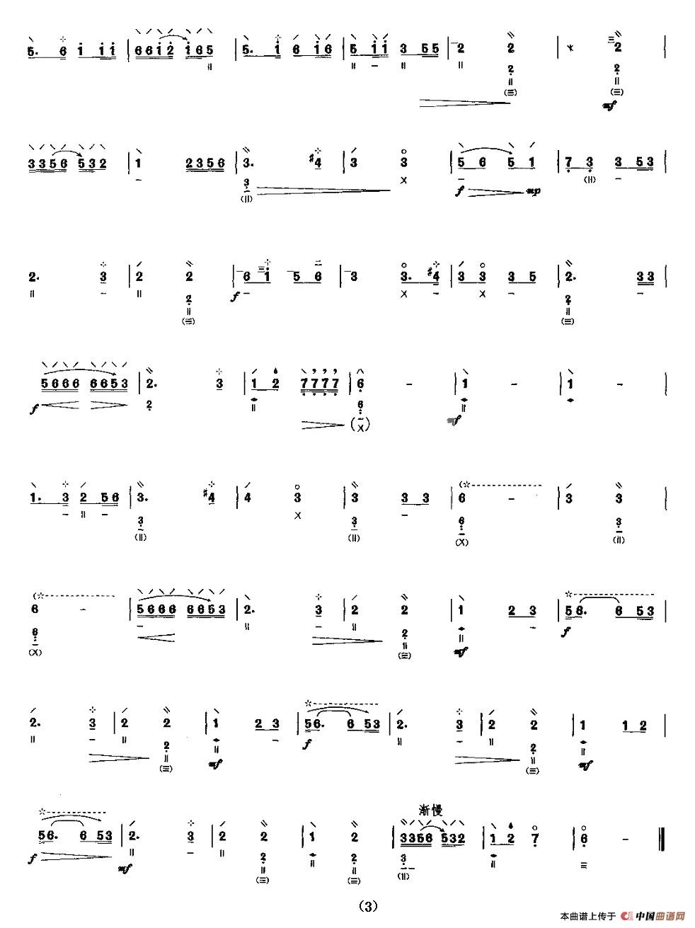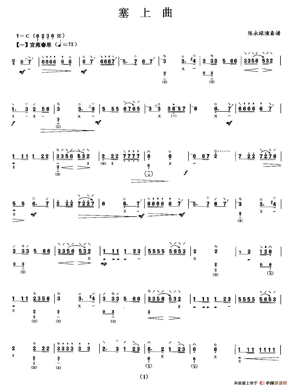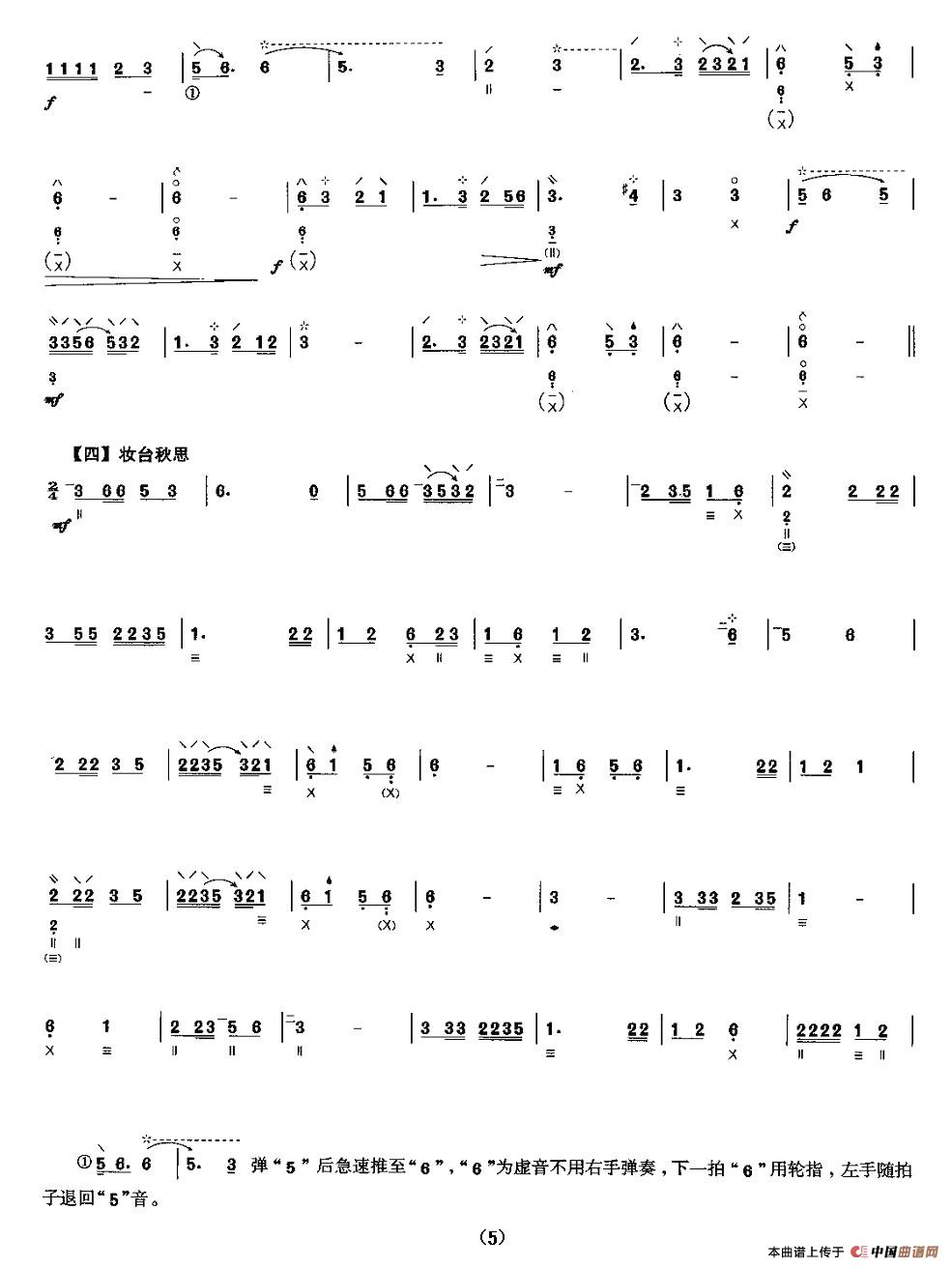 该曲凄怨、优美、动听,琵琶老师有的喜欢改变成D调的曲谱,如果有翻译成D调的曲谱那就更好了,谢谢! [回复]