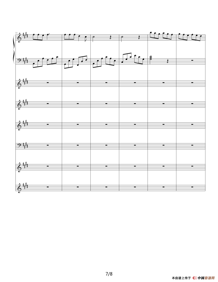 提示:在曲谱图片上单击右键,选择“图片另存为...”即可将曲谱保存到您的电脑中,打印时候可将图片插入到WORD中,调整合适大小打印即可。
