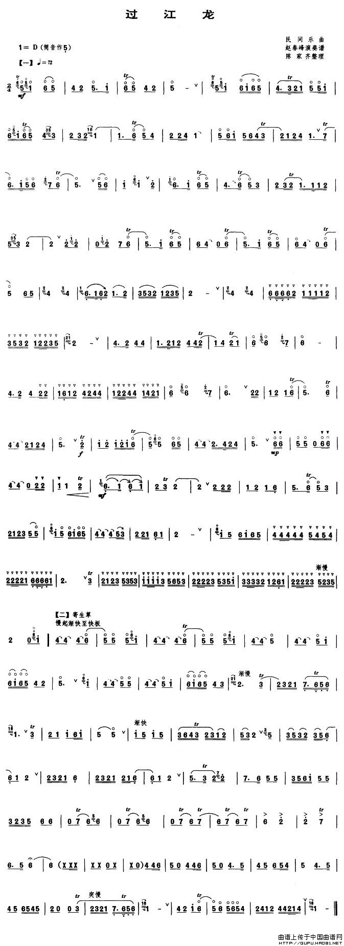 关于《过江龙》曲谱的评论