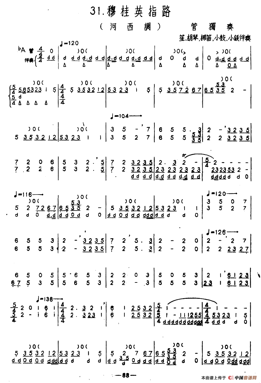选自《定县子位村 管乐曲集》,穆桂英指路(河西调) bA调。
