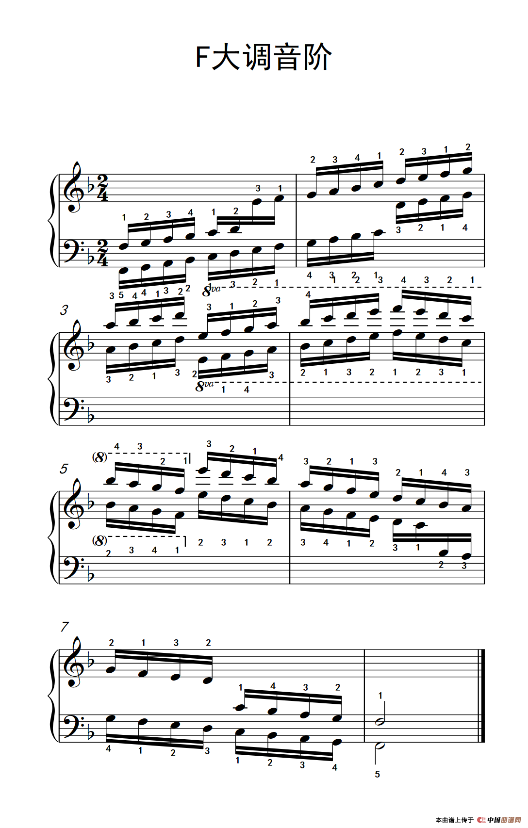 第六级 13.F大调音阶(中央音乐学院 钢琴(业余)考级教程 4-6级)