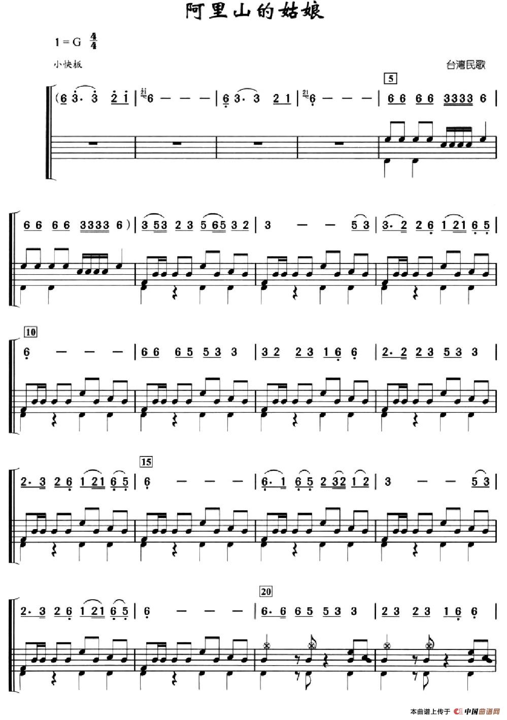 阿里山的姑娘(架子鼓、简谱+鼓谱)