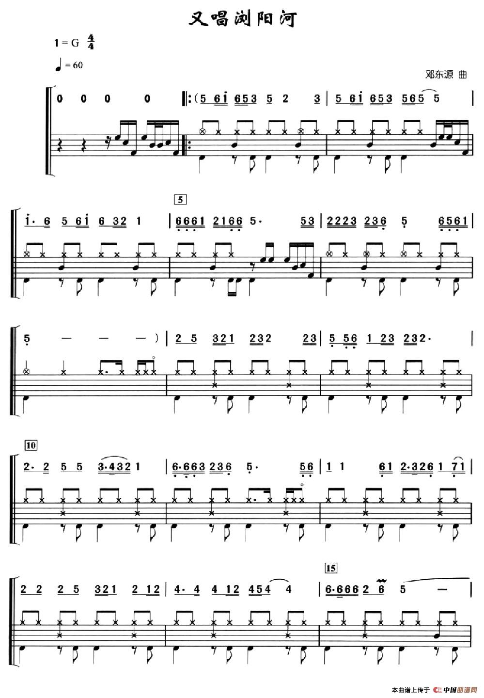 又唱浏阳河(架子鼓、简谱+鼓谱)