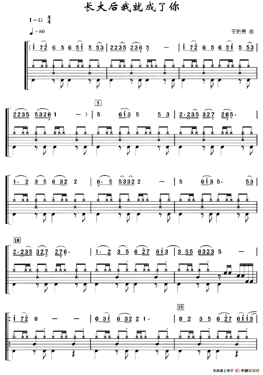 长大后我就成了你(架子鼓、简谱+鼓谱)