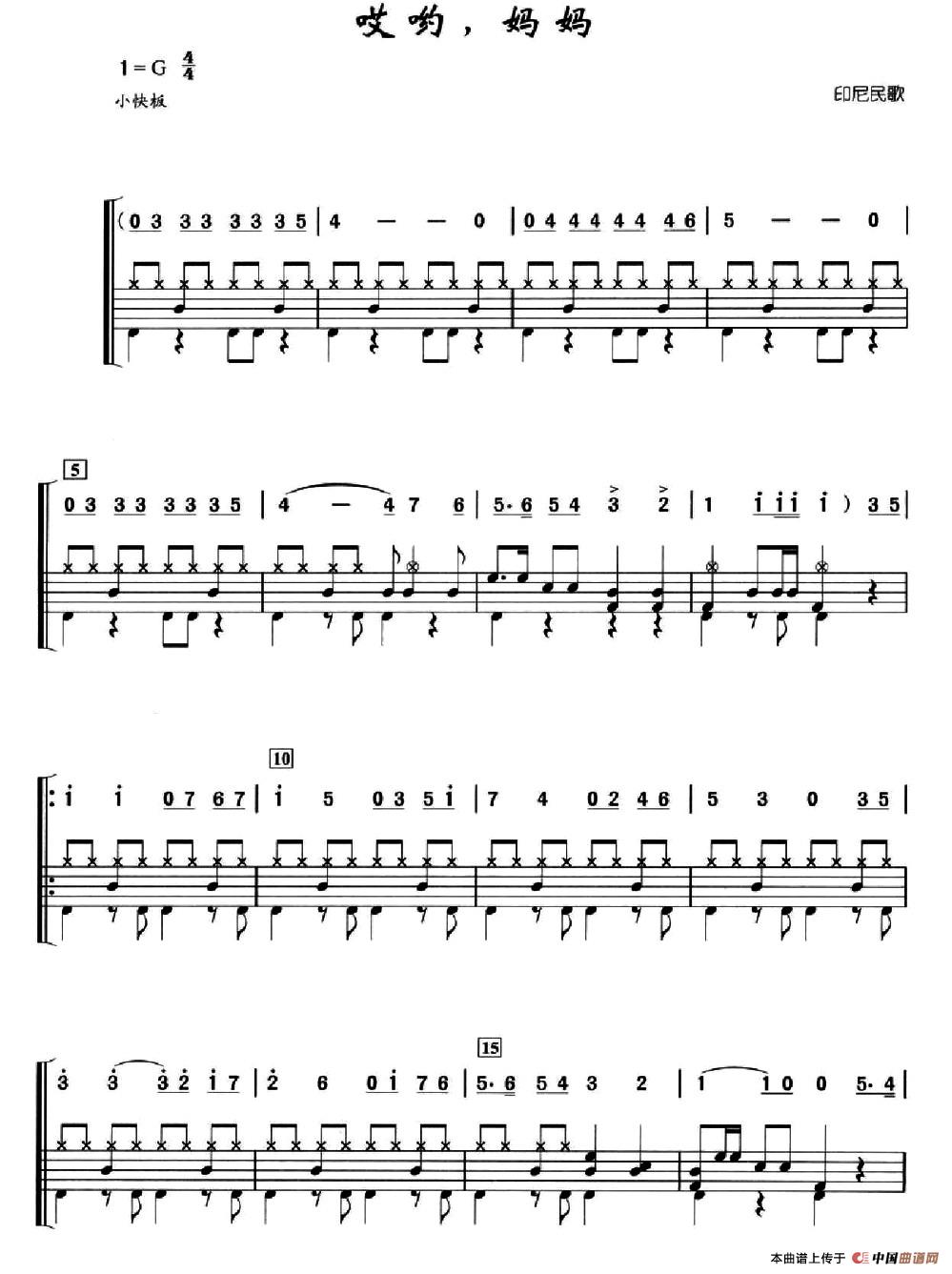[印尼]哎哟,妈妈(架子鼓、简谱+鼓谱)