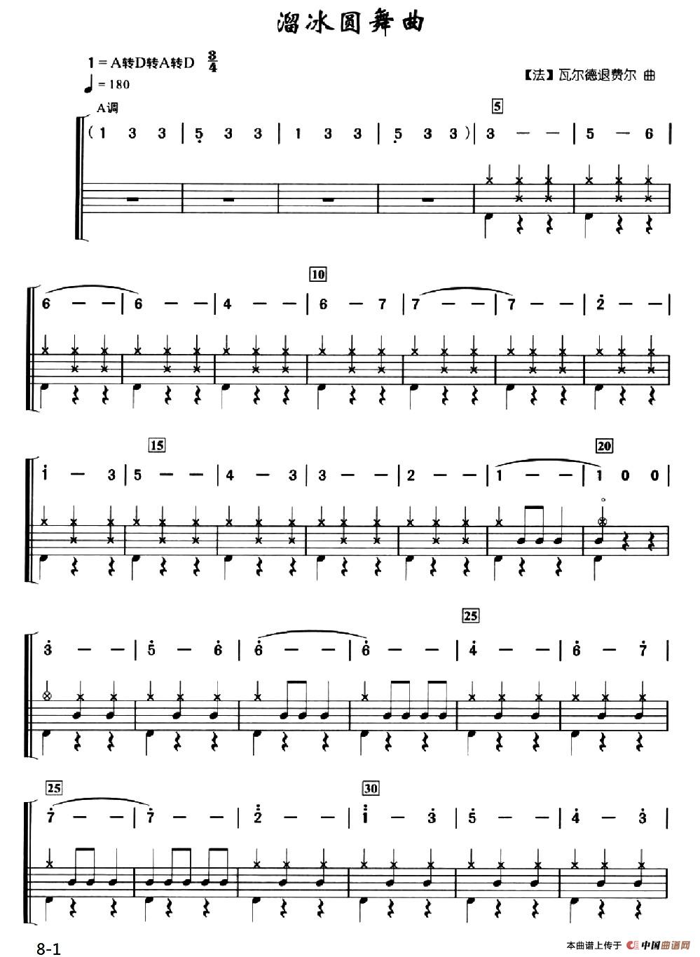 [法]溜冰圆舞曲(架子鼓、简谱+鼓谱)