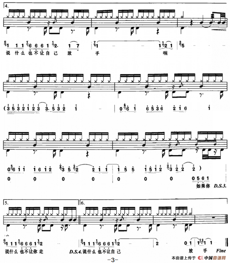 选自《架子鼓流行歌曲鼓谱50首》