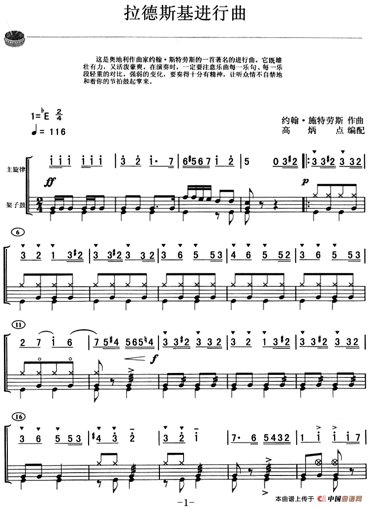 拉德斯基进行曲(架子鼓、主旋律+鼓谱)