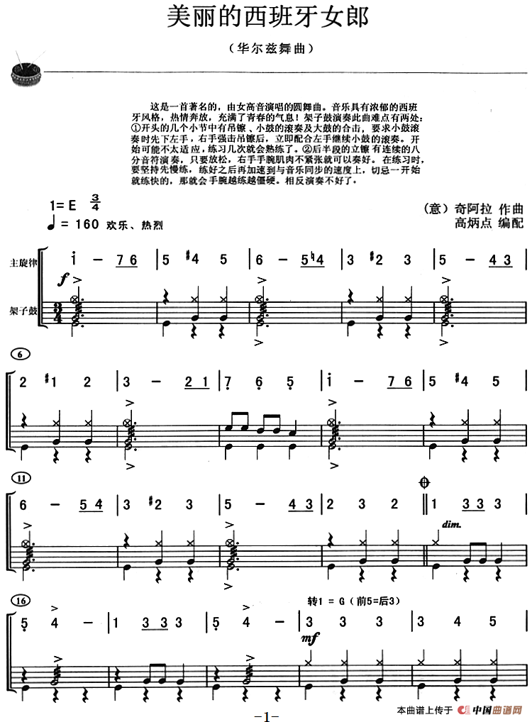 美丽的西班牙女郎(架子鼓、主旋律+鼓谱)