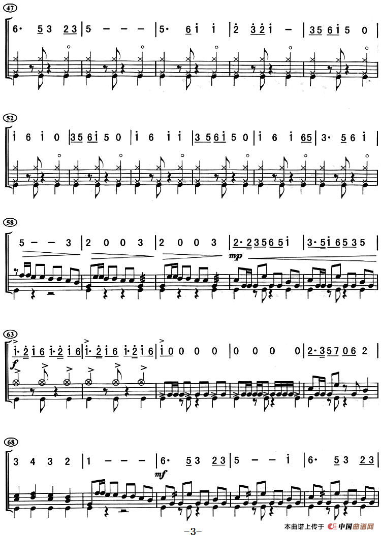 提示:在曲谱图片上单击右键,选择“图片另存为...”即可将曲谱保存到您的电脑中,打印时候可将图片插入到WORD中,调整合适大小打印即可。