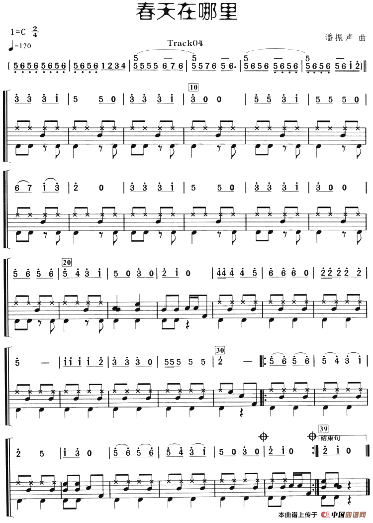 春天在哪里(架子鼓、主旋律+鼓谱)