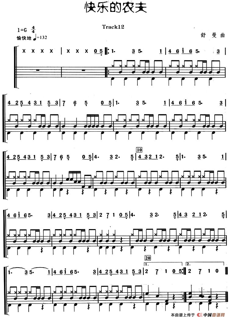 快乐的农夫(架子鼓、主旋律+鼓谱)