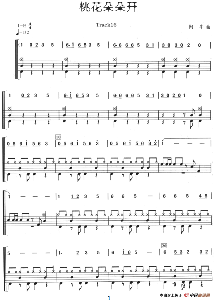 桃花朵朵开(架子鼓、主旋律+鼓谱)