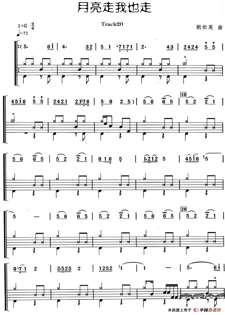 月亮走我也走(架子鼓、主旋律+鼓谱)