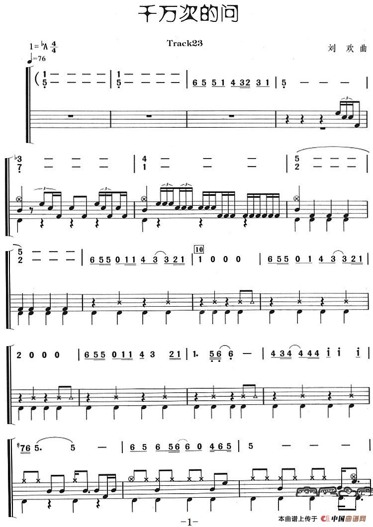千万次的问(架子鼓、主旋律+鼓谱)