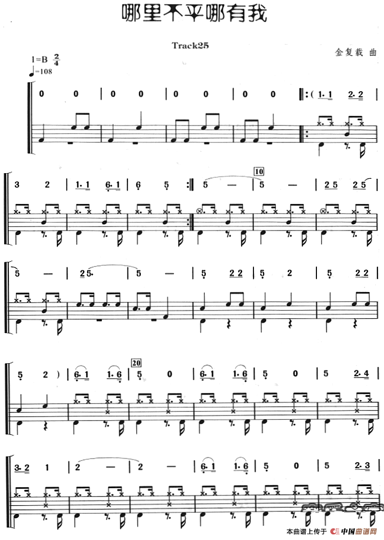 哪里不平哪有我(架子鼓、主旋律+鼓谱)