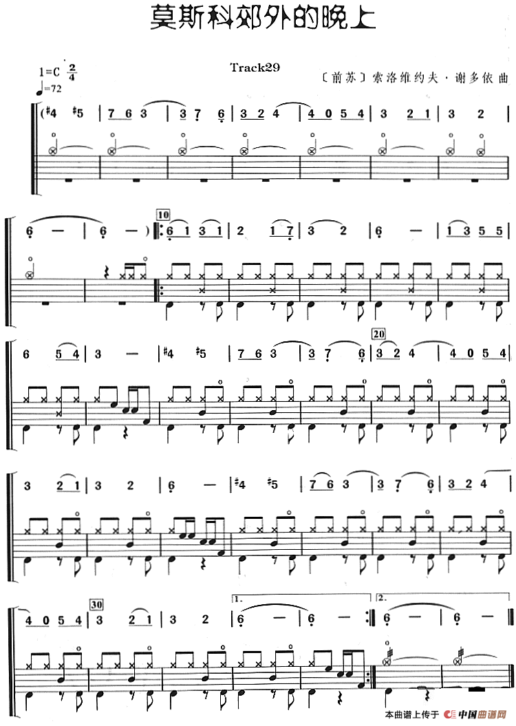 莫斯科郊外的晚上(架子鼓、主旋律+鼓谱)