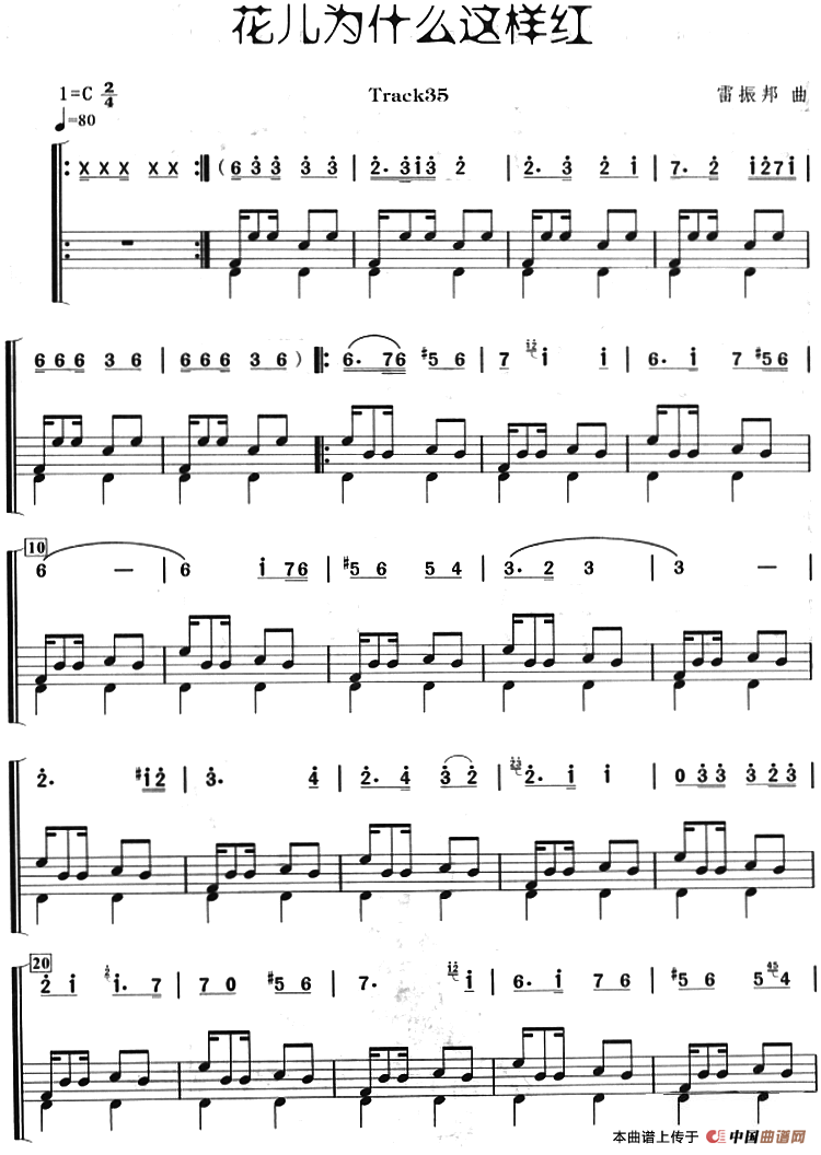 花儿为什么这样红(架子鼓、主旋律+鼓谱)