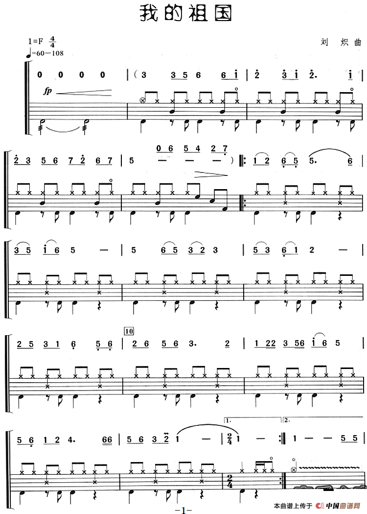 我的祖国(架子鼓、主旋律+鼓谱)