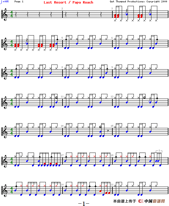 爵士鼓谱:Papa Roach - Last resort