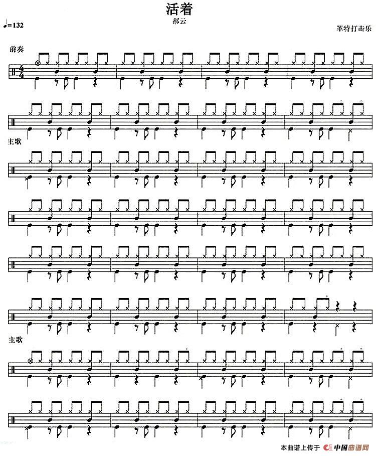 架子鼓谱:活着
