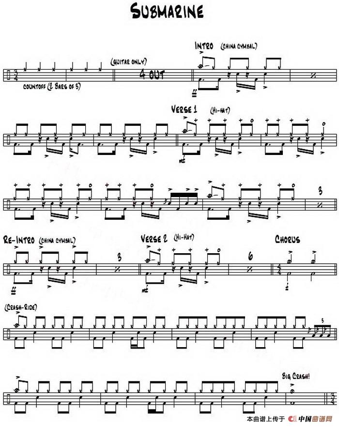 架子鼓谱: Rock - Submarine