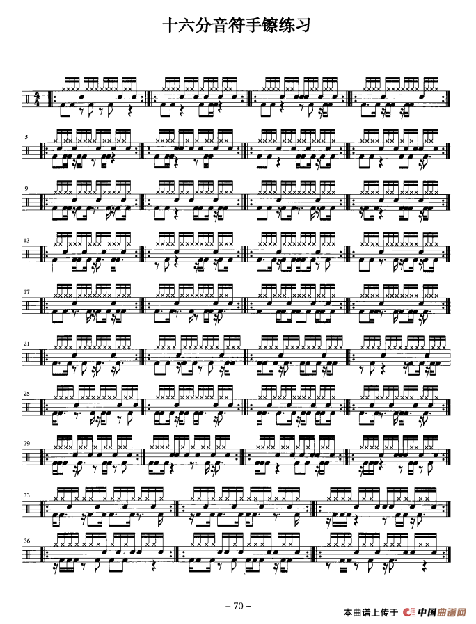 架子鼓五级十六分音符手镲练习